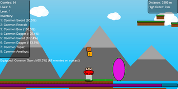 A procedural generated game, inspired by Mario 2D, avoid the killer cats at all cost, get fat! eat cookies and get some cake!